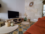 Cette jolie maison de 84 m² offre une ambiance chaleureuse et conviviale grâce à ses murs en pierre et son caractère authentique.