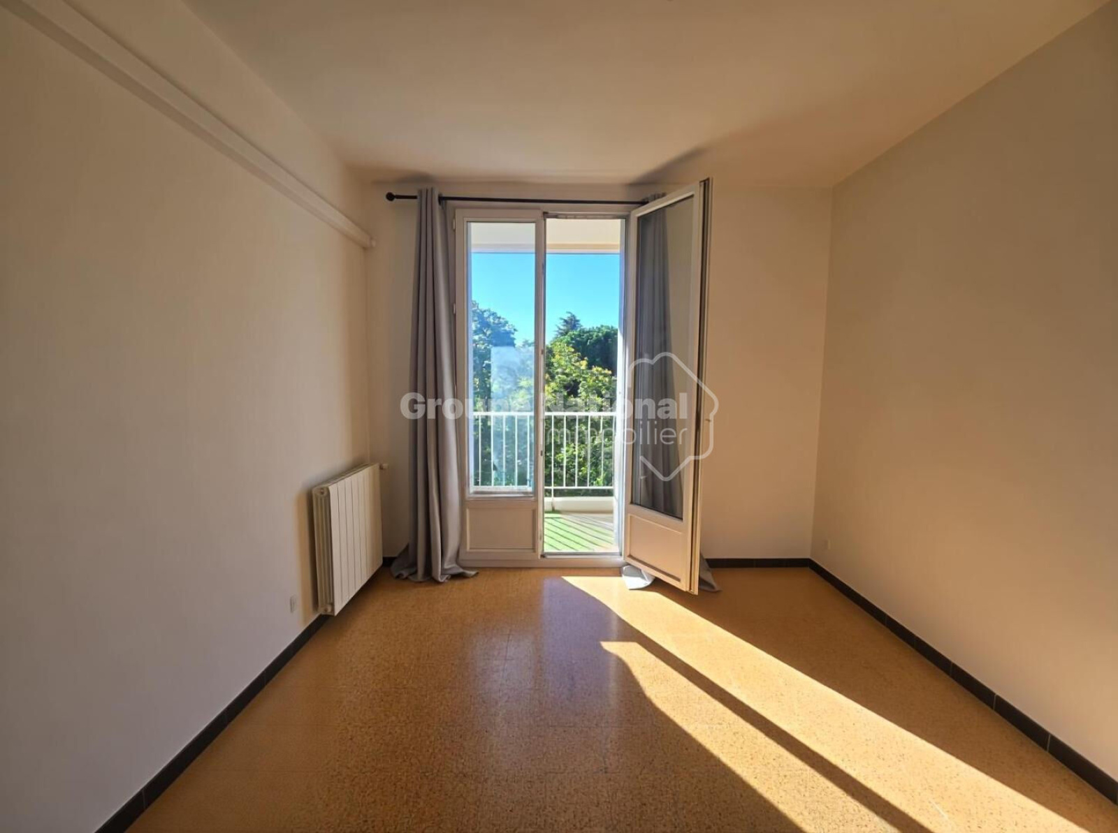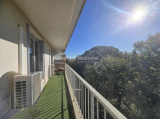 Le double séjour, lumineux et spacieux, s'ouvre sur un grand balcon où vous pourrez profiter d'une vue apaisante sur le parc environnant.